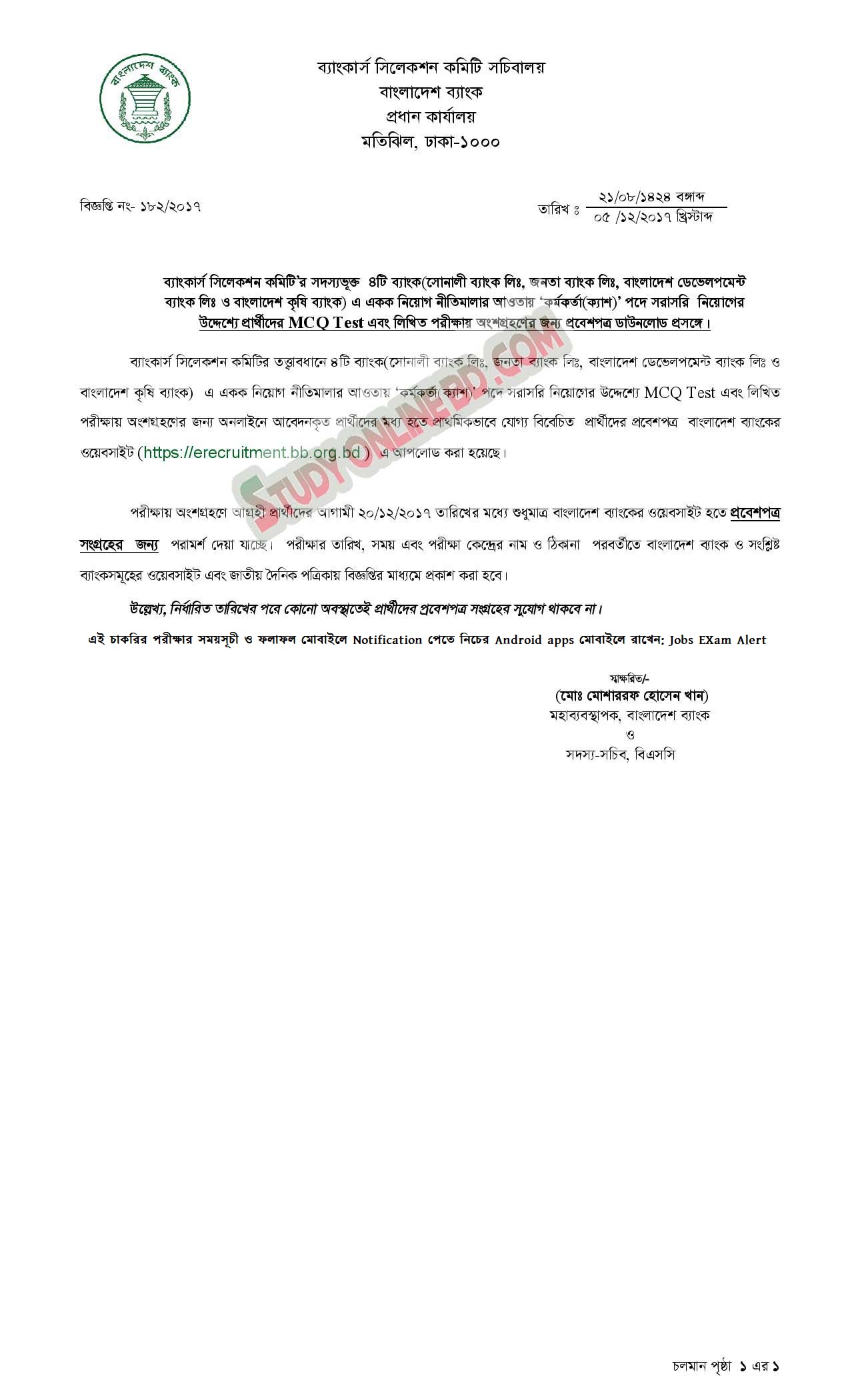 Bangladesh bank exam Admit card