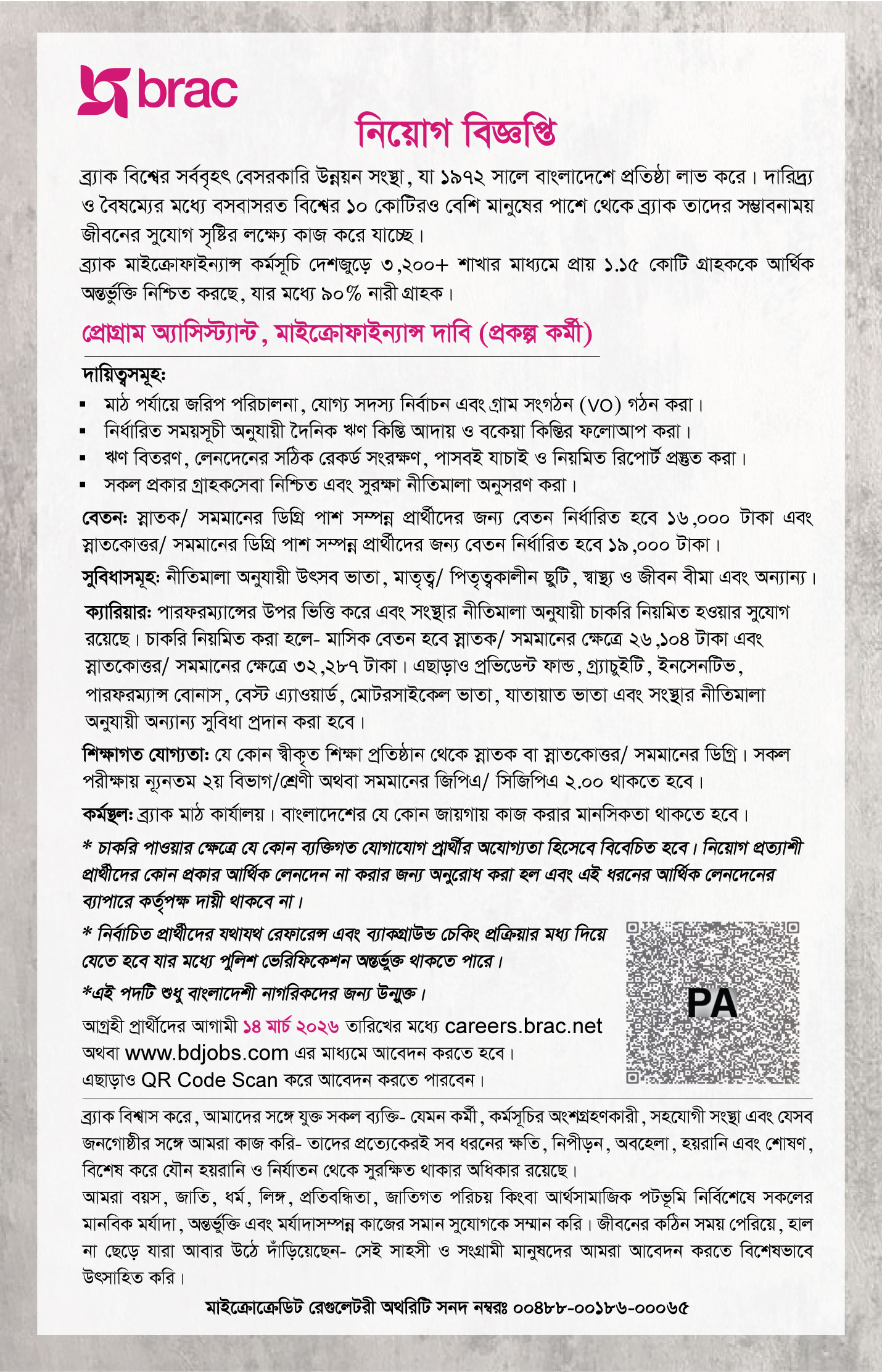 • BRAC does not charge any fee for recruitment. Candidates are requested not to engage in any financial transaction.
